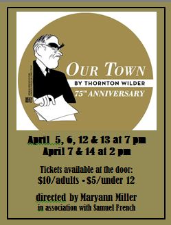 The classic three-act play, Our Town by Thornton Wilder, will be on stage at the Winnsboro Center for the Arts in April. Produced in association with Samuel French, the play will be directed by Maryann Miller. Our Town is a character-driven story about an average town's citizens in the early twentieth century as depicted through their everyday lives.